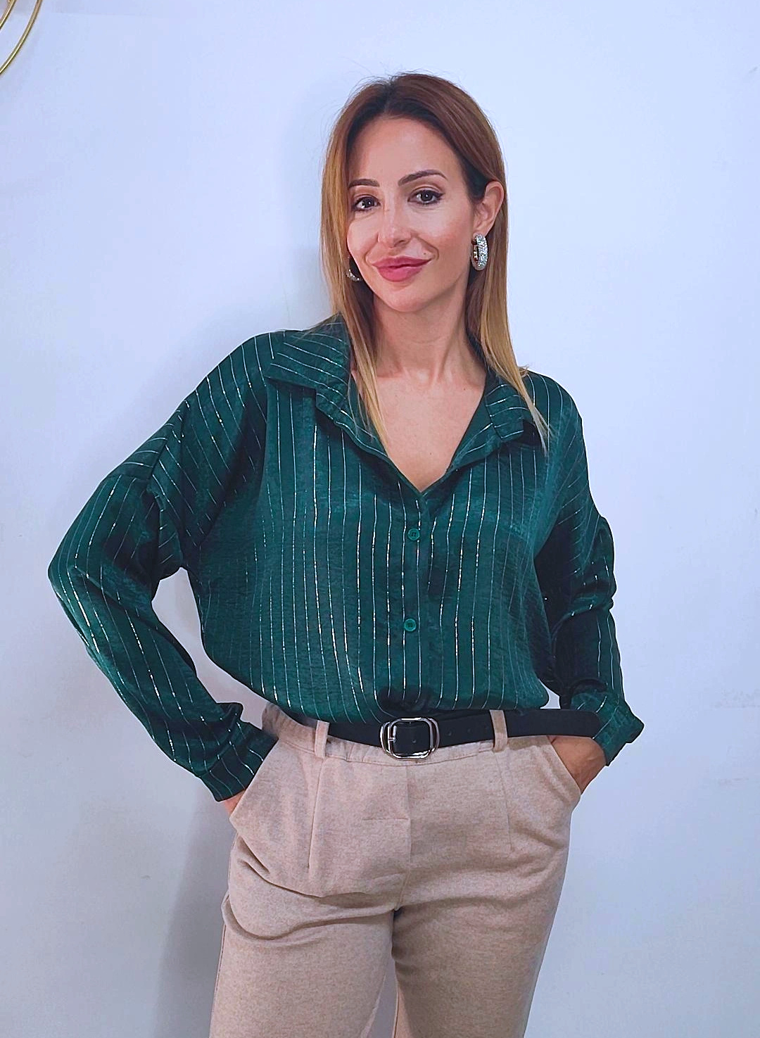 Etiquetas: Camisa, Listas platas, Negro, Verde Botella