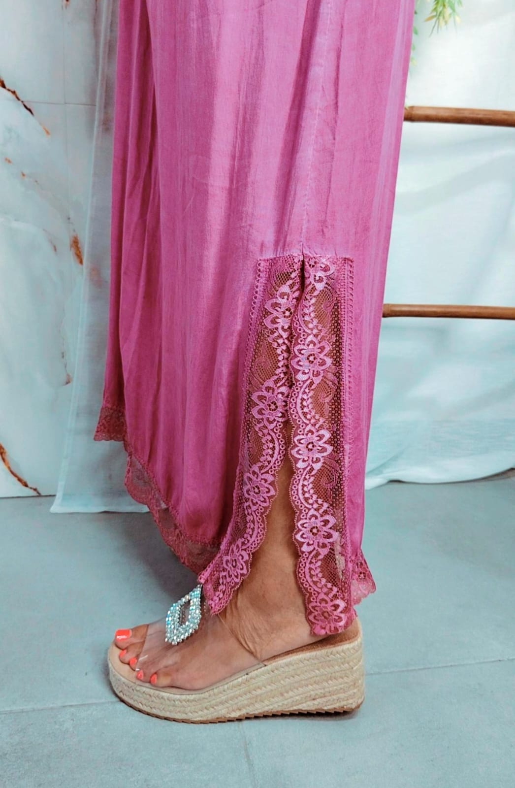 [Tirante-Tirante: 36 cm / Sisa: 50 cm / Cintura: 57 cm / Cadera: 63 cm / Largo: 135 cm]
